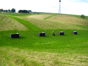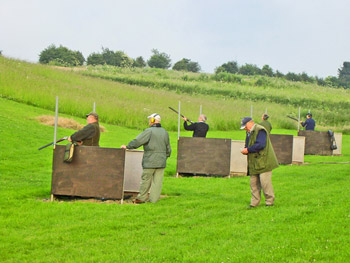 The Grouse Flush is a favorate for all shooters. Last August it had a makeover. It now has 4 butts situated in the bottom of the valley, in which you stand. The targets are thrown over the brow of the hill. The traps are all automatic, with an osellating mode which work from a remote control keypad.